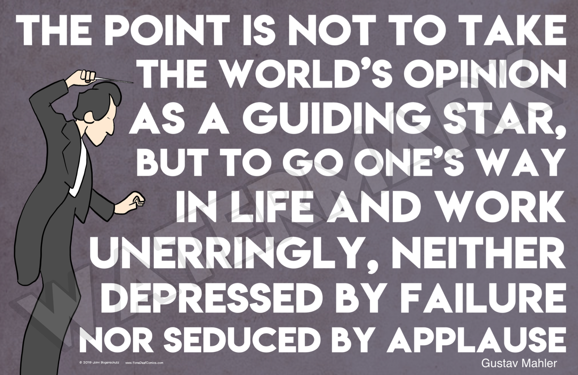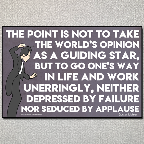 The point is not to take the world's opinion as a guiding star, but to go one's way in life and work unerringly, neither depressed by failure nor seduced by applause. Get this magnificent quote by Mahler on a 17" x 11" poster today.