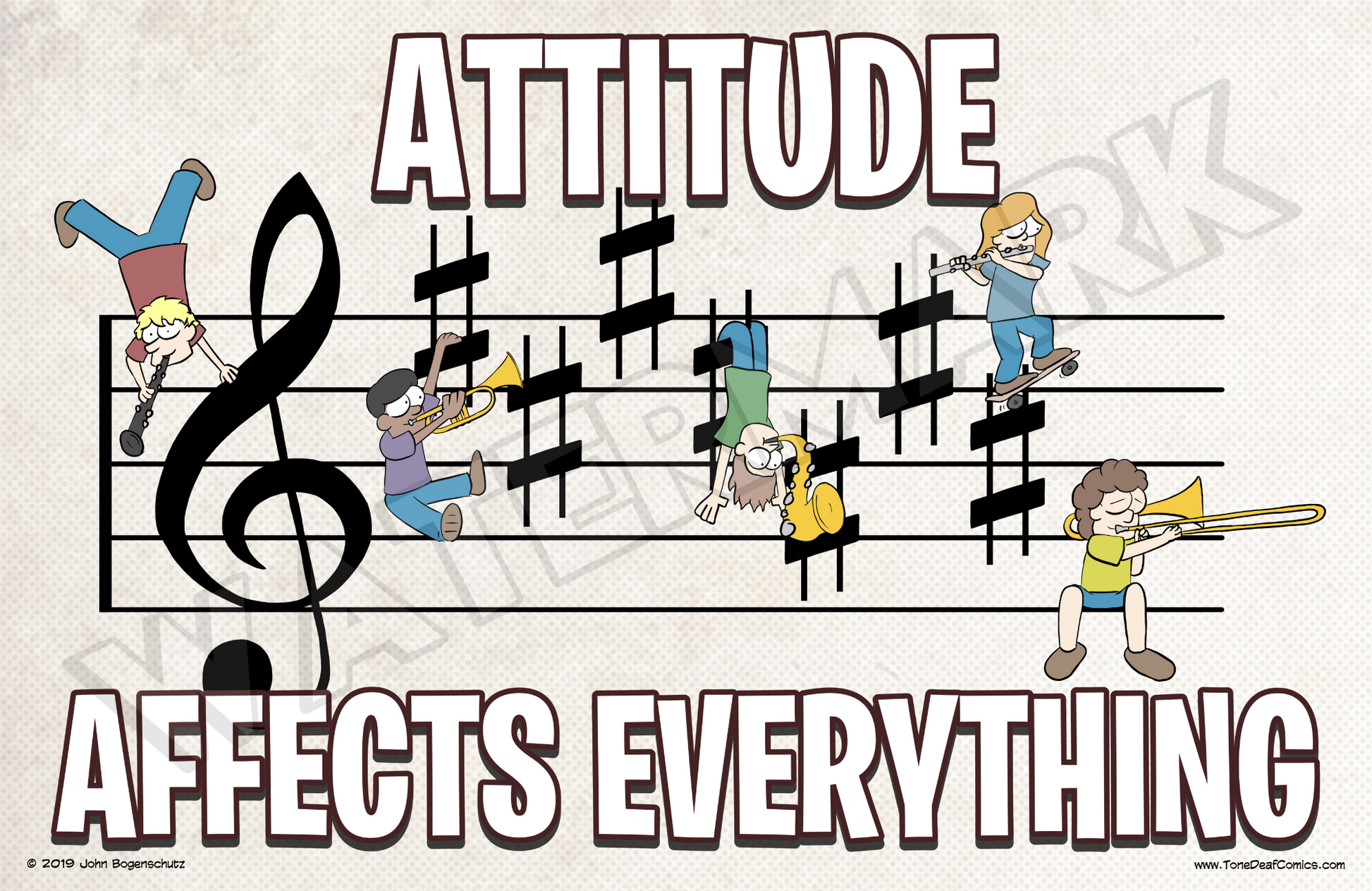 Take control of your attitude with this positively charged music poster! "Attitude Affects Everything" is cleverly designed to remind you that your outlook shapes your experience — and with a vibrant, eye-catching color bar, your walls will be lookin' fly! 🎵