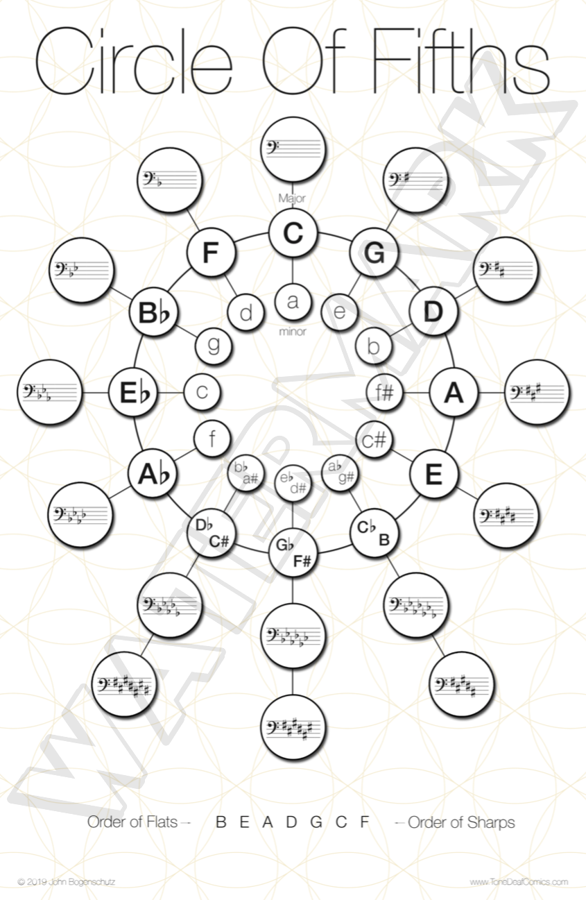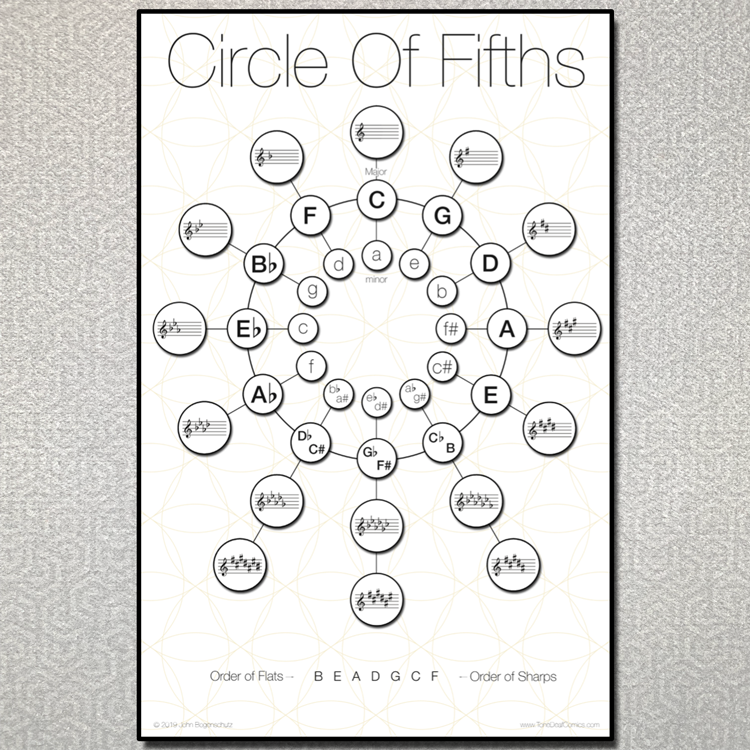 Get this circle of fifths poster for your classroom today. It's a great, new design of the classic circle. Get this fantastic 11" x 17" poster in either treble clef or bass clef for your classroom today!