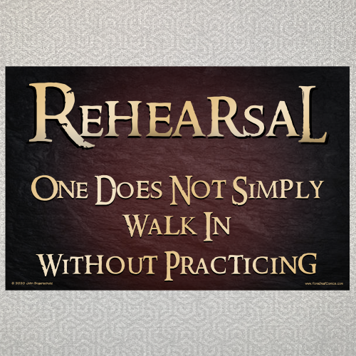 Rehearsal. One Does Not Simply Walk In Without Practicing. 17" x 11"